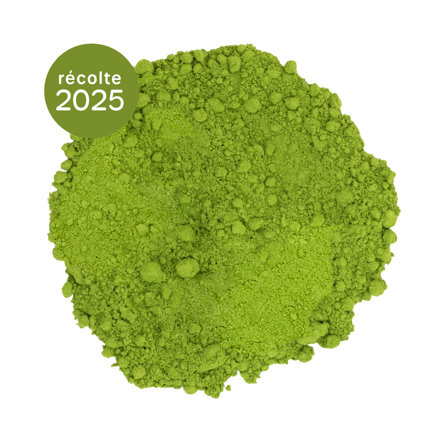 De belle facture, sa poudre d’un vert intense donne une tasse onctueuse, aux notes de chocolat blanc et de noisette, où la fraîcheur végétale rencontre une gourmandise discrète. Peu tannique, il s’invite aussi bien en dégustation simple qu’en pause crémeuse.