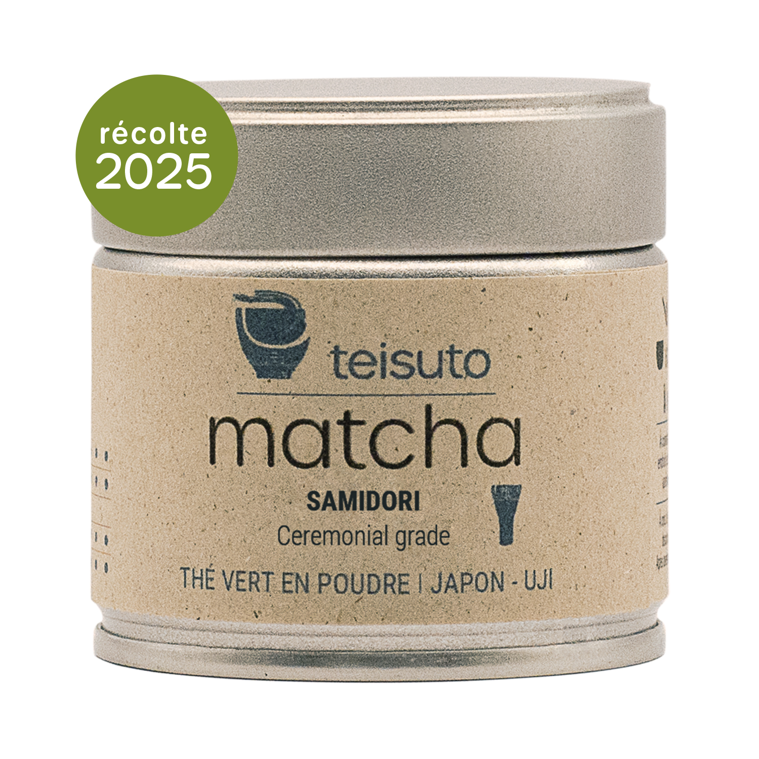 Récolté au printemps 2025, ce matcha moulu à la meule de pierre est issu du cultivar Samidori. Onctueux et doux.